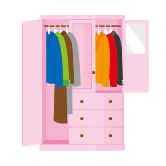 服の収納場所は上段にシーズンオフの服や重量が軽い服を、中段には頻繁に使う服を、下段には重量が重い服を収納します。