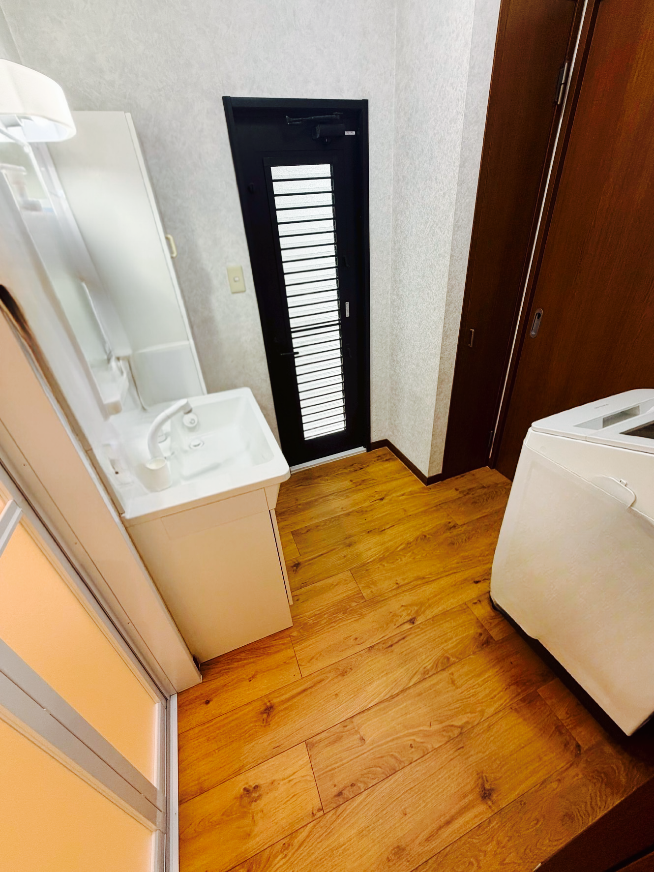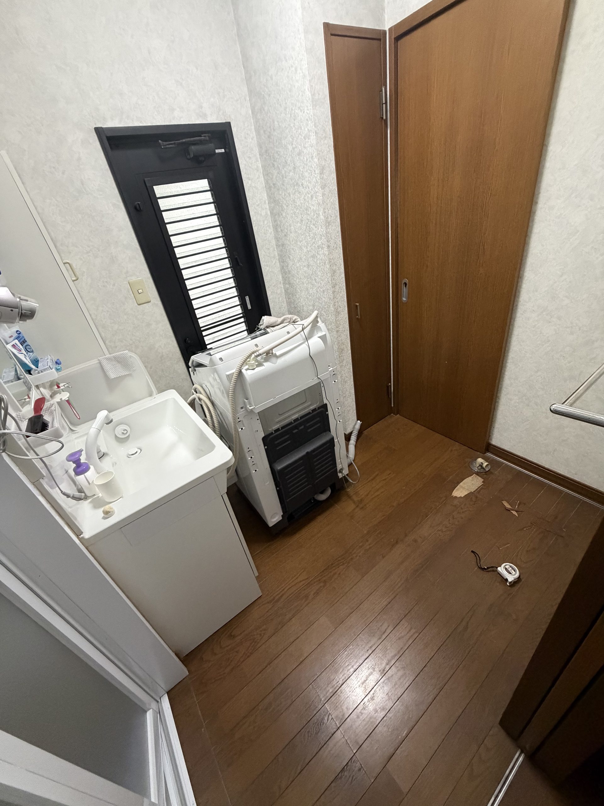 洗面脱衣室の床も、防水性&デザイン性の高いフロアタイルへと張り替え💁♀️
