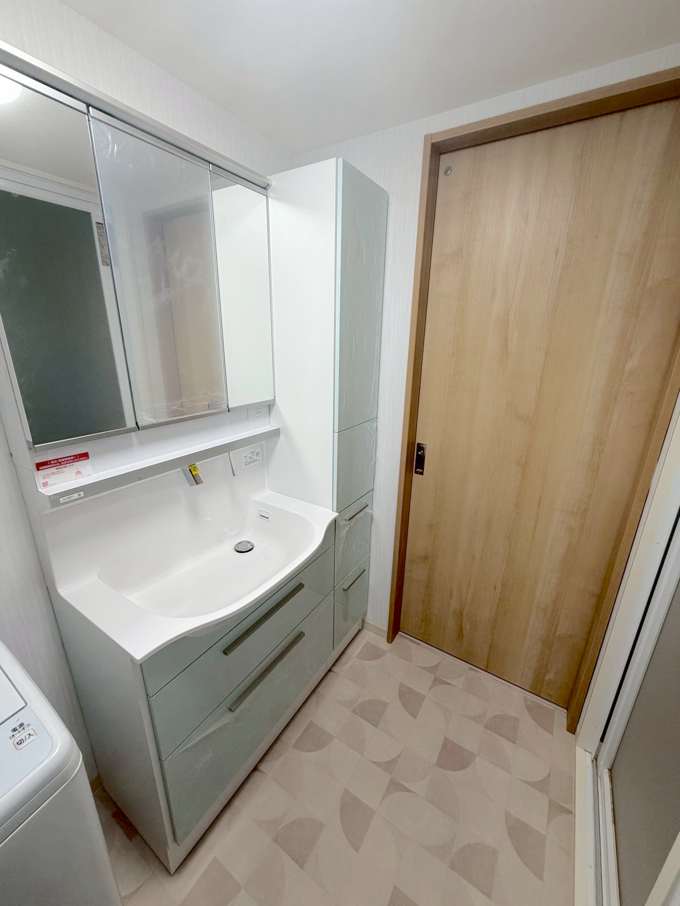 たっぷり収納付きの洗面化粧台へ入れ替えてピカピカです✨