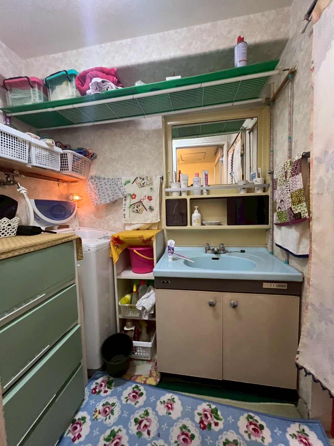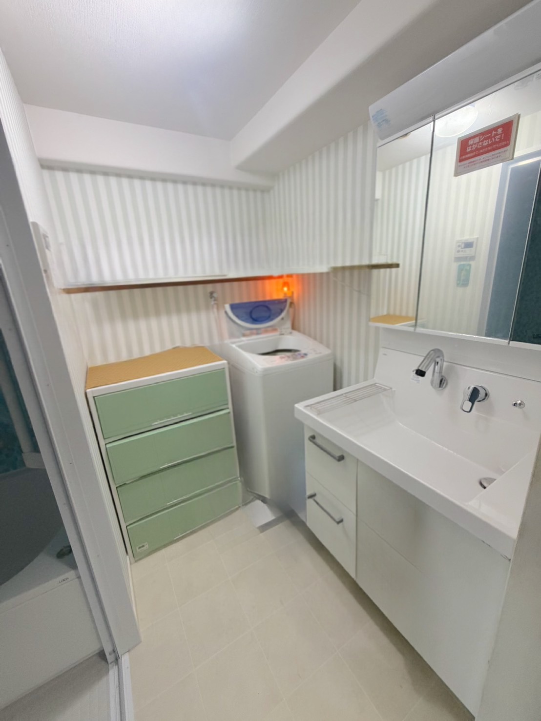 洗面脱衣室も設備入替と可愛いクロスへチェンジ😍